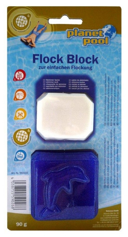 Gelový blok je výrobek pracující na principu vločkovače určený k vyvločkování nečistot z bazénu. Působením obsaženého gelu dochází k rychlému zvětšování objemu jemných nečistot do velkých vloček. Používat pouze u bazénů vybavených pískovou filtrací.