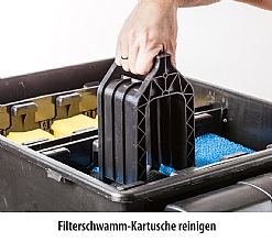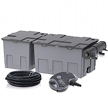 Filtrace je vybavena 10 metrovým přívodním kabelem, teleskopickou stupačkou se třemi vodními efekty, přípojkou na vodní chrlič, 9 W UV lampou proti řasám. Filtraci skrytě umístíte přímo do jezírka, doporučujeme umístit na cihly, nebo kámen a pokud možno vodorovně (prodloužíte životnost čerpadla, osičky a rotoru)