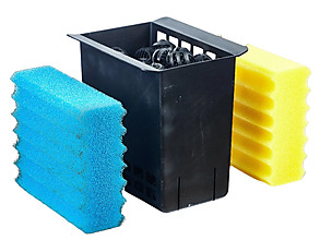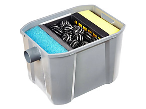 - filtrační materiál: filtrační houby (1x modrá, 1x žlutá), filtrační koule