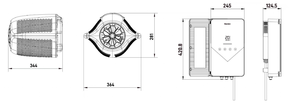 - Ovládání pomocí dotykového displeje, mobilní aplikace, dálkového ovladače nebo Modbus RS485