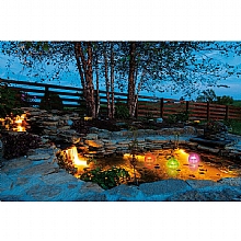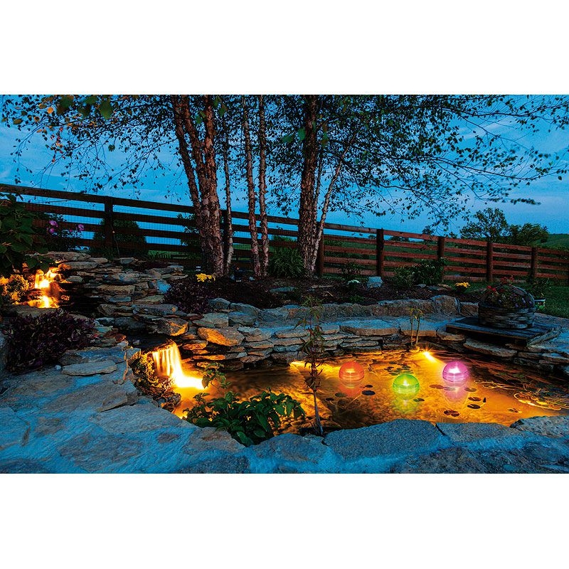 Světla jsou vodotěsná a dají se použít jako plovoucí osvětlení v jezírku, nebo bazénu. Úsporné osvětlení díky LED žárovkám, které automaticky mění barvy. Obsahují integrovaný stmívací senzor, který automaticky vypíná a zapíná světla při soumraku a rozednění. Integrovaný solární panel s vyměnitelnými dobíjecími bateriemi. Při plné nabití je doba svícení 8 hodin. Sada obsahuje tři zápichy pro snadné umístění osvětlení v zahradě.