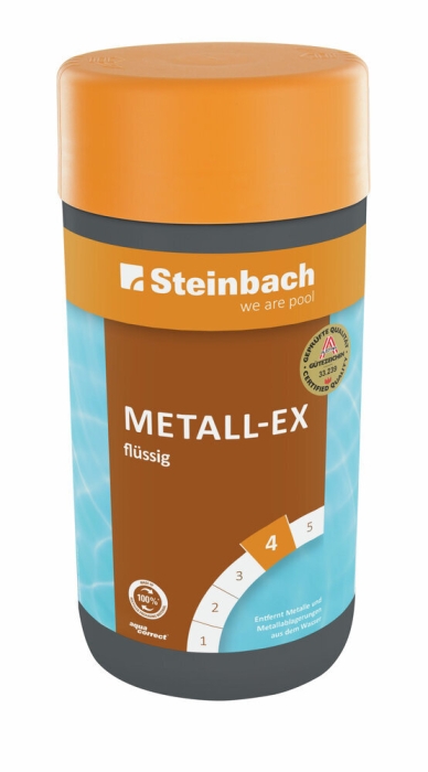 Kovy se vyskytují v téměř každé vodě ve více či méně pevné formě. Velké množství kovů v bazénu vede buď k zákalu vody, nebo k usazeninám na částech technologie a příslušenství. S přípravkem Metall-EX můžete navázat velkou část těchto kovových složek z bazénové vody a odstraňovat je pomocí filtračního systému. Dávkování může pokračovat, dokud nebude voda v bazénu křišťálově čistá. Určeno pro soukromé bazény.