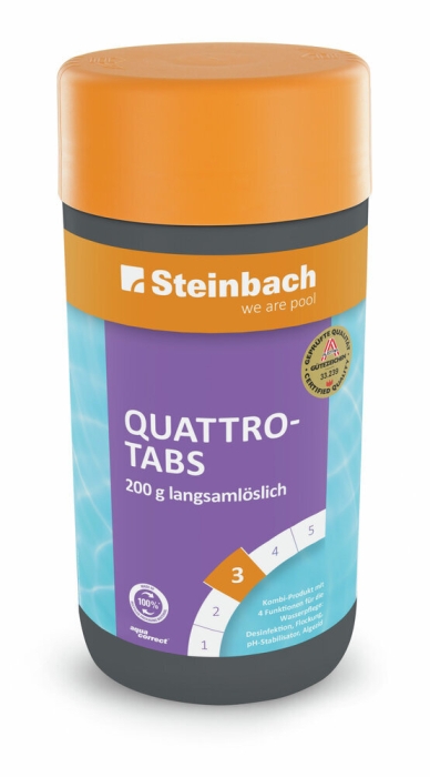 Kombinovaný přípravek se 4 funkcemi pro péči o bazénovou vodu: dezinfekce, stabilizace pH, vločkovač - flokulant, algicid.