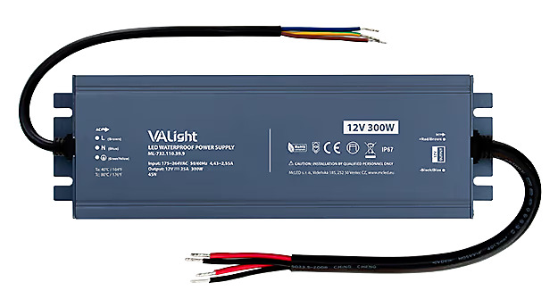 NOVÉNapájecí zdroj 300 W, DC 12 V/25 A, IP67, hliníkové provedení