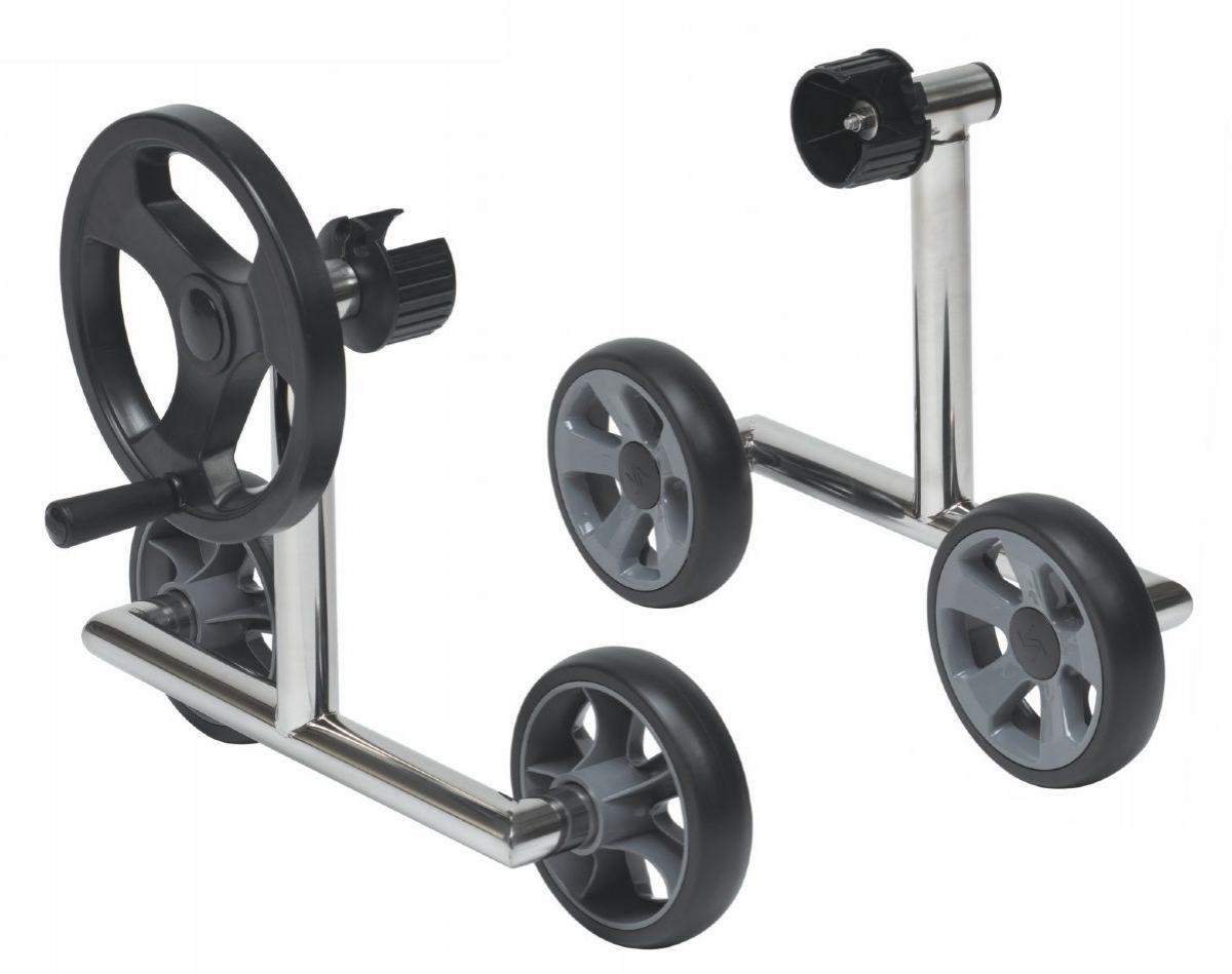 Kompletní navijákové sady obsahují: nerezové stojny, teleskopickou tyč, sadu pásků a příchytek pro upevnění solární plachty, pojistku proti rozmotání. Teleskopická tyč je vyrobena z eloxovaného hliníku a má po celé délce drážku pro jezdce k upevnění plachty. Navíjecí zařízení jsou vyráběna firmou Vágner a to v několika modifikacích, pevné, tj. pro pevnou instalaci pomocí hmoždinek, které jsou součástí, přenosné a mobilní (s kolečky). Tyto stojny jsou vyrobeny z leštěné nerezové oceli a plast. částí. Součástí dodávky je kompletní sada s příslušnými komponenty pro zajištění pevného napojení plachty, tkalounu a navíjecí tyče. Zařízení má také pojistku proti rozmotání navinuté krycí plachty.