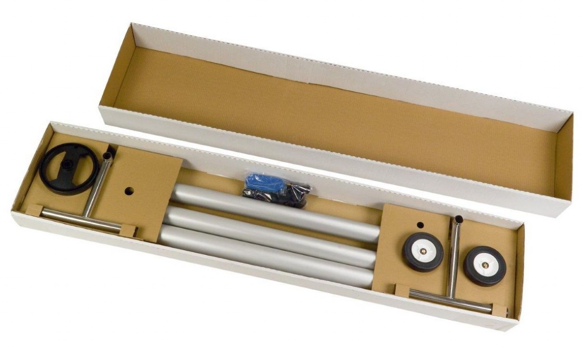 Krabice s navíjecím zařízením "sestav si sám" obsahuje hliníkovou eloxovanou teleskopickou tyč skládající se vždy ze tří dílů, nerezové stojny + komponenty potřebné pro sestavení kompletního zařízení. Součástí jsou veškeré úchyty a tkalouny pro solární plachtu. Zařízení je přehledně umístěno v jedné krabici o rozměru 1 850 x 330 x 150 mm. V nabídce jsou dvě možnosti šíře navíjecí teleskopické tyče a to 2,7–3,6 m a 3,7–4,6 m .