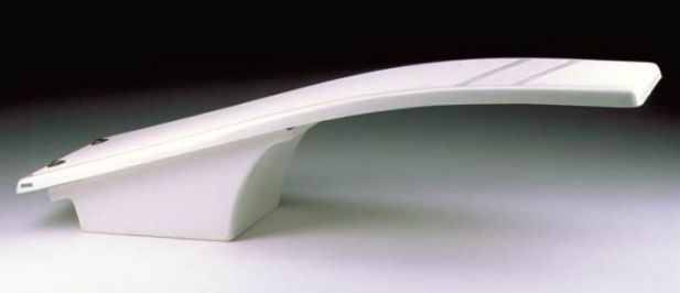Široké odrazové prkno s protiskluzovým povrchem odolným UV záření a atmosférickým vlivům.