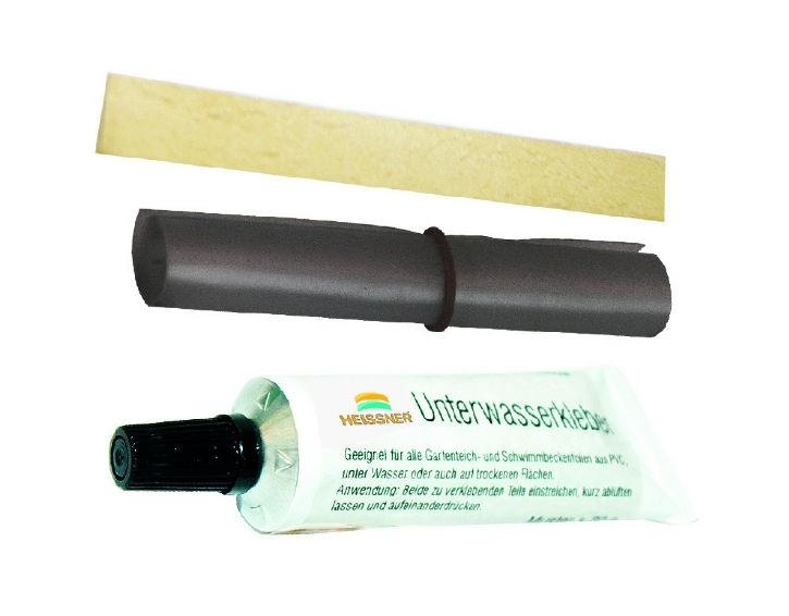 Opravná sada TF855-00 Heissner se skládá z lepidla na PVC fólie a záplaty (PVC fólie) pro opravu poškozeného místa. Je možno lepit jak na sucho tak pod vodou.