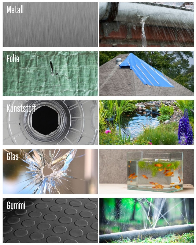 Extrémně silná a vodotěsná opravná páska „EasyFIX“ . Slepíte materiály jako plast, fólie, kov, guma nebo sklo. S lepící páskou lze také bez problémů lepit odpovídající materiály pod vodou. Snadno opravíte: malá poškození zahradních hadic, stříšek, fólii v jezírku, plastových jezírek, fólii v bazénů, drenážní trubky, vše co potřebujete rychle opravit. Stačí ustříhnout požadovaný rozměr a jednoduše zalepíte samolepící páskou EasyFIX.