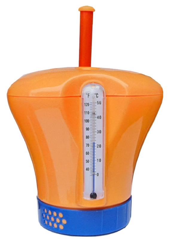 Dávkovač chlórových tablet s teploměrem. Zaručí, aby Vaše bazénová voda byla chemicky ošetřena.