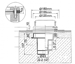 Podlahová výpust ABS, nerez mřížka AISI 316 – pro fóliové bazény, napojení 2“ in