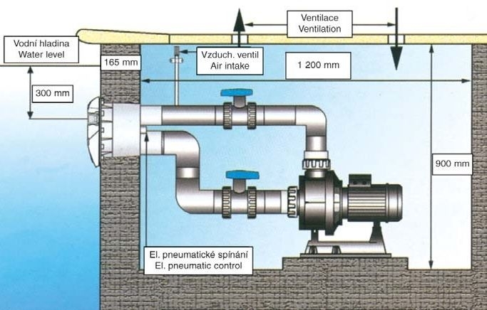Pro foliové a předvyrobené bazény - Snadná instalace, tryska o průměru 40 mm, směrově nastavitelná, elektropneumatické spínání s jistícím prvkem.
