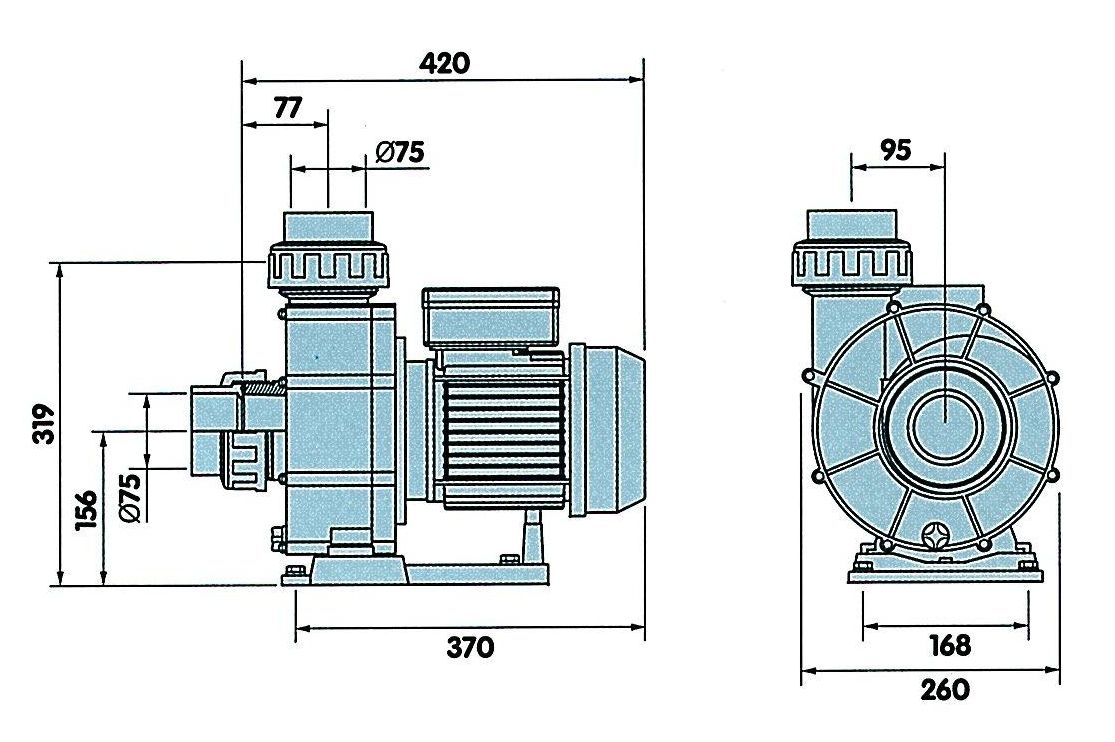 Samostatné čerpadlo k protiproudu, možno využít i jako oběhové čerpadlo k vodním atrakcím např. chrličům. Vyrobeno z polypropylenu s příměsí skelného vlákna. Umístění čerpadla by mělo být v suchém prostoru, pod úrovní hladiny vody v bazénu.