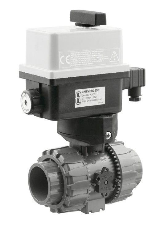 PVC kulový elektrický dvoucestný ventil, 50 mm