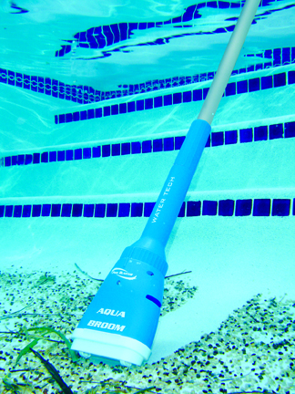 Vysavač Planet Pool Aqua Broom je lehký (necelá 2 kg), snadno se tak ovládá a lze jej připevnit na jakoukoli standardní teleskopickou bazénovou tyč (tyč není součástí dodávky).