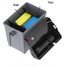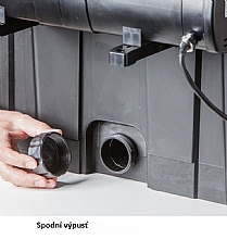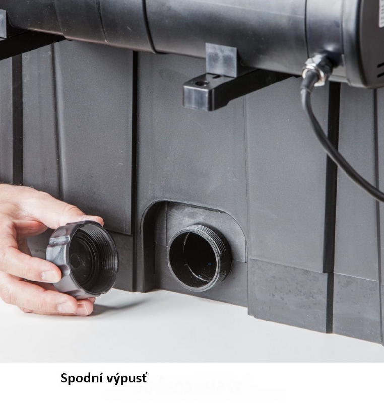 Indikátor znečištění (upozornění na nutnost vyčištění), zabudovaný teploměr na víku filtrace pro zjištění teploty vody, snadné čištění filtračních hub - systém press and clean. UV lampa je vybavena kontrolním průzorem pro ověření funkčnosti UV zářivky. Včetně filtračních médii (filtrační houby různé hrubosti, japonská rohož, domečky pro osídlení bakteriemi) a spojovacím materiálem.