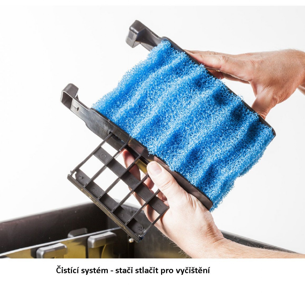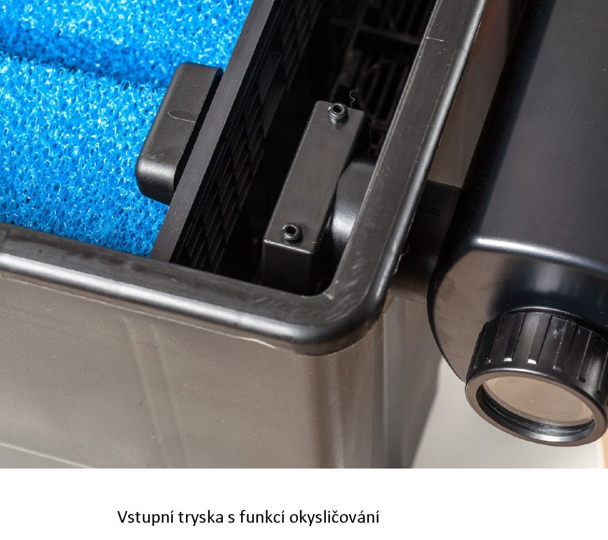 | Filtrační materiál | filtrační houby různé hrubosti, japonská rohož, domečky pro osídlení bakteriemi |