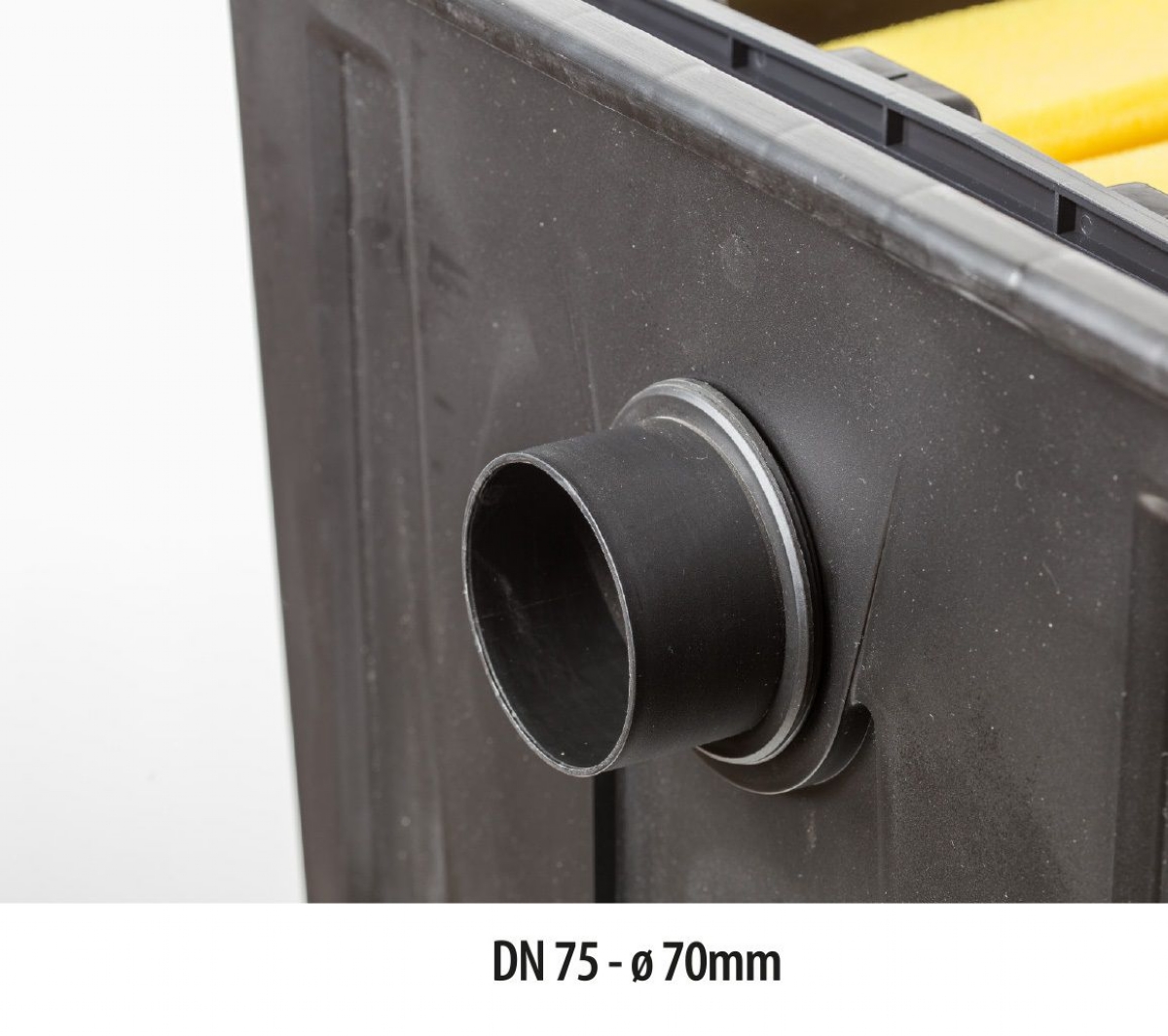 Zajištění proti přetečení bypassem, indikátor znečištění (upozornění na nutnost vyčištění), zabudovaný teploměr na víku filtrace pro zjištění teploty vody. Filtrace obsahuje výpustní otvor pro snadné čištění a systém press and clean. UV lampa je vybavena kontrolním průzorem pro ověření funkčnosti UV zářivky. Včetně filtračních médii (filtrační houby různé hrubosti, japonská rohož, domečky pro osídlení bakteriemi) a spojovacím materiálem.