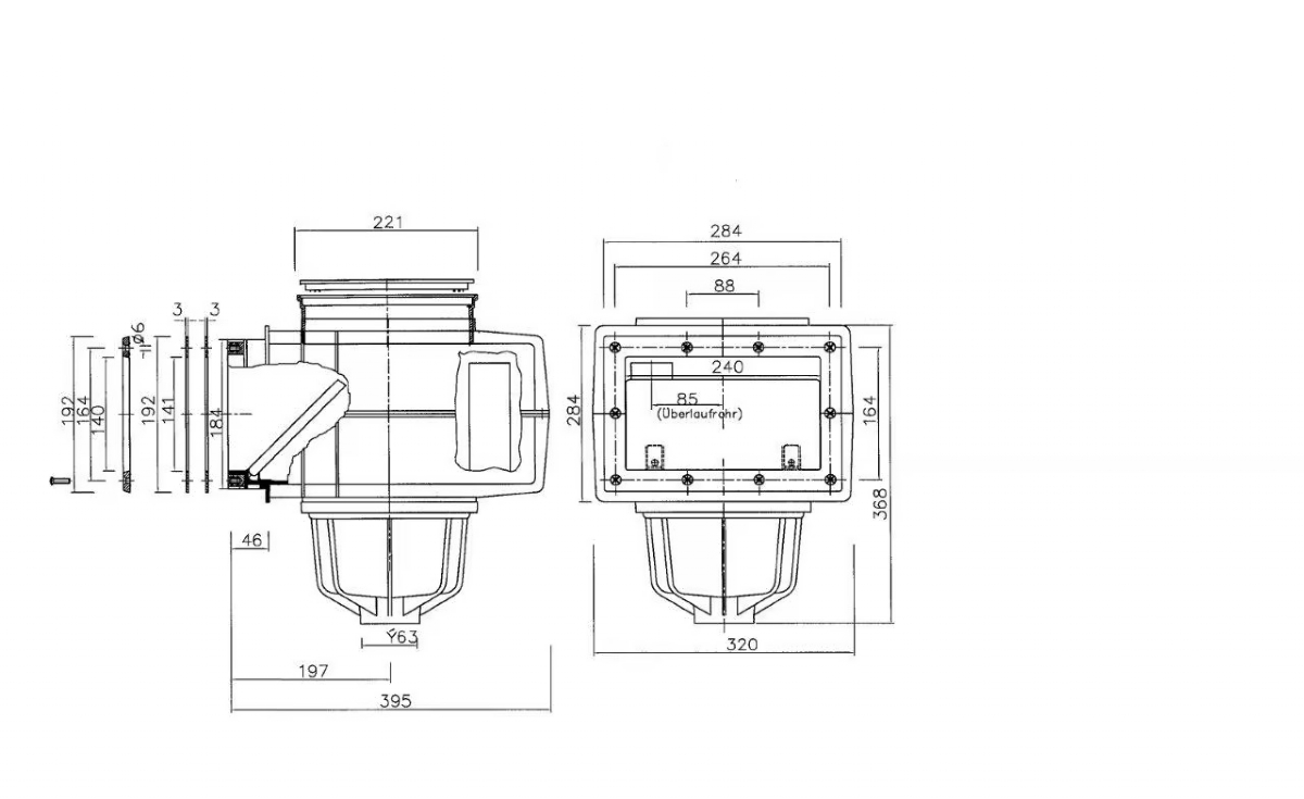 Barva: Šedá, Materiál - pohledová část: Plast, Materiál těla: ABS, Připojení: 63 / 50 mm, Vakuový kotouč součástí: ne
