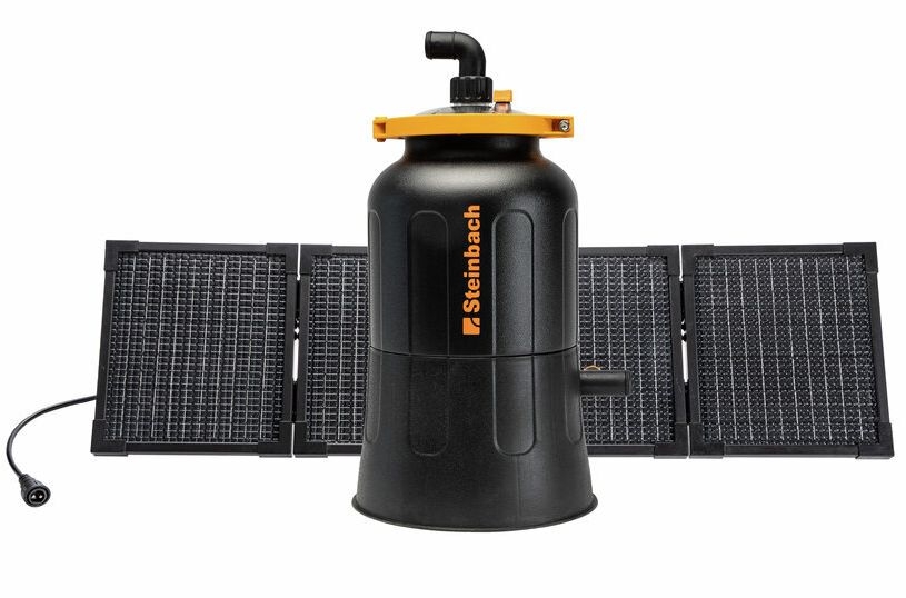 Filtrační systém se solárním panelem pro autonomní ekologický provoz. Výkonu až 3,5 m3/h. Pro bazény do objemu 19 m3. Filtrace pomocí filtračních kuliček.