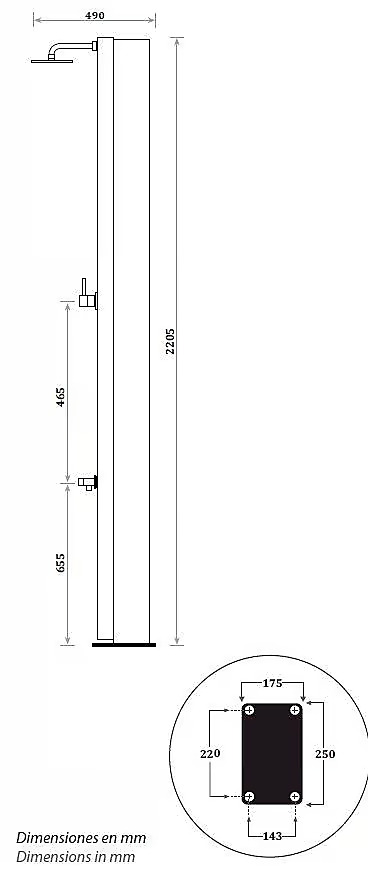 Solární sprchy CRM s objemem 30l a bočním 1/2" připojením na vodu. Provedení v lakované oceli. Balení obsahuje sadu k ukotvení.