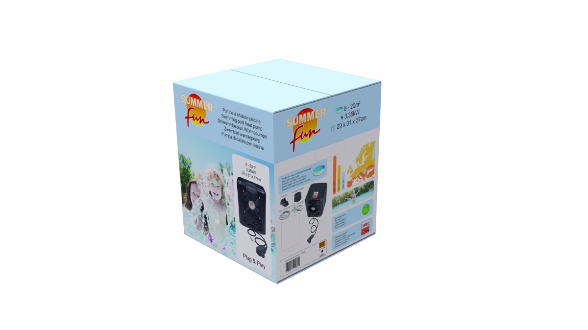 Instalace tepelného čerpadla je velmi jednoduchá, a to i již na postavené bazény. Jednoduchý instalační postup „plug&play“ je bezpečný a pohodlný. Integrovanou bezpečnostní zástrčku RCD zapojíte do zásuvky a tepelné čerpadlo napojíte na filtrační okruh a vše je připraveno k použití. Následně nastavíte požadovanou teplotu vody a čerpadlo na ni bazén vyhřeje.