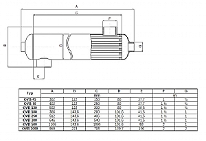 Materiál AISI 316, max. tlak 1,72 MPa, max. teplota 208°, topná / ohřívaná voda: 95 / 705 l/m, plocha 1,97 m2