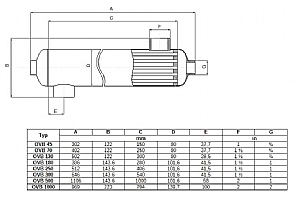 Materiál AISI 316, max. tlak 1,72 MPa, max. teplota 208°, topná / ohřívaná voda: 27 / 200 l/m, plocha 0,34 m2