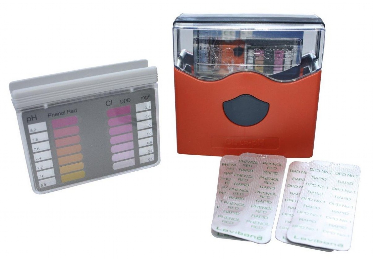 Tester DPD pracuje na principu vizuálního porovnání s barevným vzorníkem vedle odběrných komor - po přidání tablet (chlór / pH) se voda zabarví, dle výsledků je potřeba upravit hodnotu chlóru / pH v bazénu.