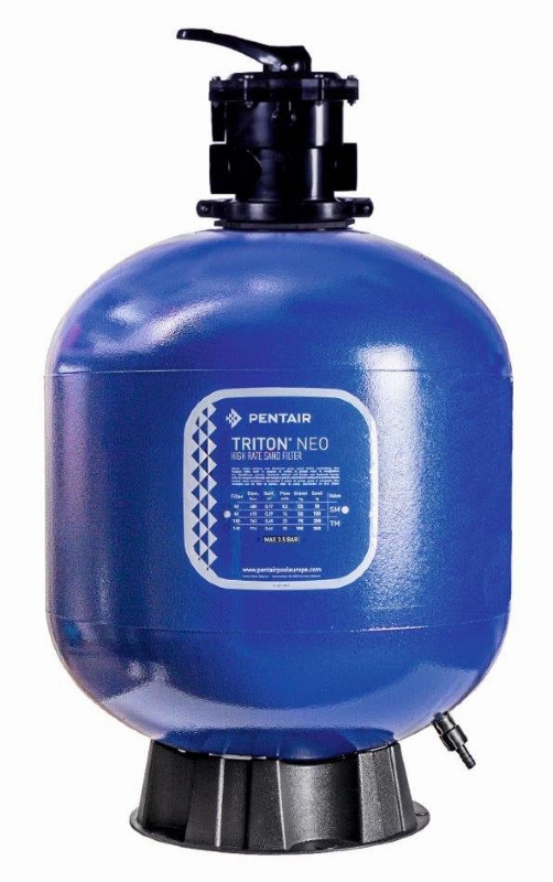 Filtry TRITON NEO-C-PRO TR jsou vyrobeny ze sklolaminátu, jsou bezešvé, zesílené vrstvou polyesteru, vybaveny 6-ti cestným top ventilem s manometrem, umístěny na podstavci.