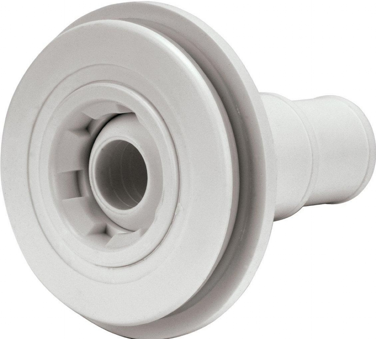 •Vratné trysky - slouží k vracení již upravené vody zpět do bazénu. Umísťují se většinou naproti skimmeru nebo v místech, kde je potřeba tzv. bazénovou vodu rozproudit. Trysky musí být nastaveny tak, aby cirkuloval celý obsah bazénu a nevznikaly tzv. "mrtvé kouty". Trysky se vyrábí z oceli nebo plastových materiálů.