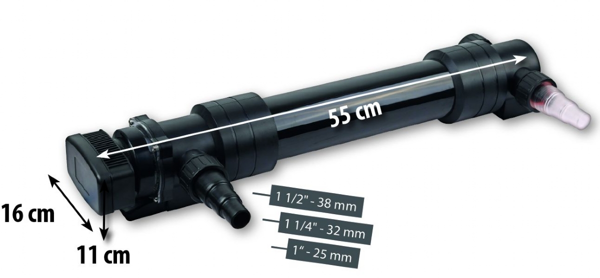 Lampa u výkonu 36 W, slouží k sterilizaci a snížení výskytu řas v jezírku do objemu 40 m3. Je vybavena průzorem pro ověření funkčnosti UV zářivky. Až o 35% větší výkon díky reflexním vnitřním povrchům, které odráží UV záření, tedy hospodárnější se spotřebou a se stejným výsledkem. Rotující tok vody a vyrovnání magnetizací, která způsobuje výrazně nižší znečištění křemíkové trubice a nesnižuje se díky tomu výkon UV zářivky. Snadná demontáž pro výměnu UV zářivky a vyčištění UV křemíkového skla, včetně univerzálních hadicových přípojek, praktické držáky na přichycení k filtraci nebo na stěnu. Zabudovaný bezpečnostní jistič. Zářivka v UV lampě se doporučuje po sezóně vyměnit, zářivka sice svítí ,ale již nemá dostatečnou sílu záření. Zároveň při výměně doporučujeme v lampě vyčistit křemíkové sklo. Vhodná náhradní UV zářivka je HEISSNER ZF436-00.