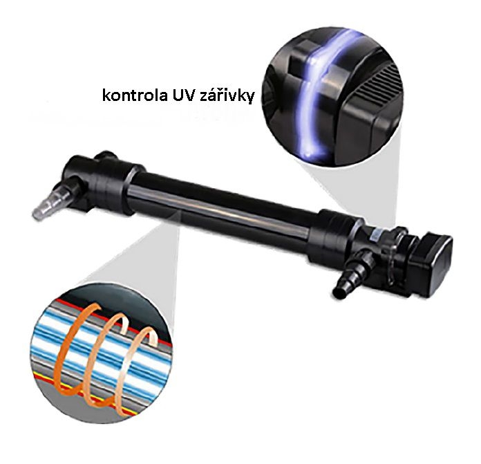 UV lampy HEISSNER ozařují protékající vodu vysoce výkonným UV světlem. V důsledku záření jsou patogeny decimovány, drobné plovoucí řasy se shlukují a díky tomu jsou zachycovány v jezírkové filtraci.