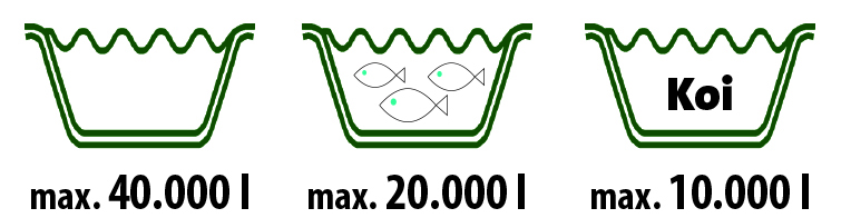| Pro jezírka s koi kapry do objemu | 10 m3 |