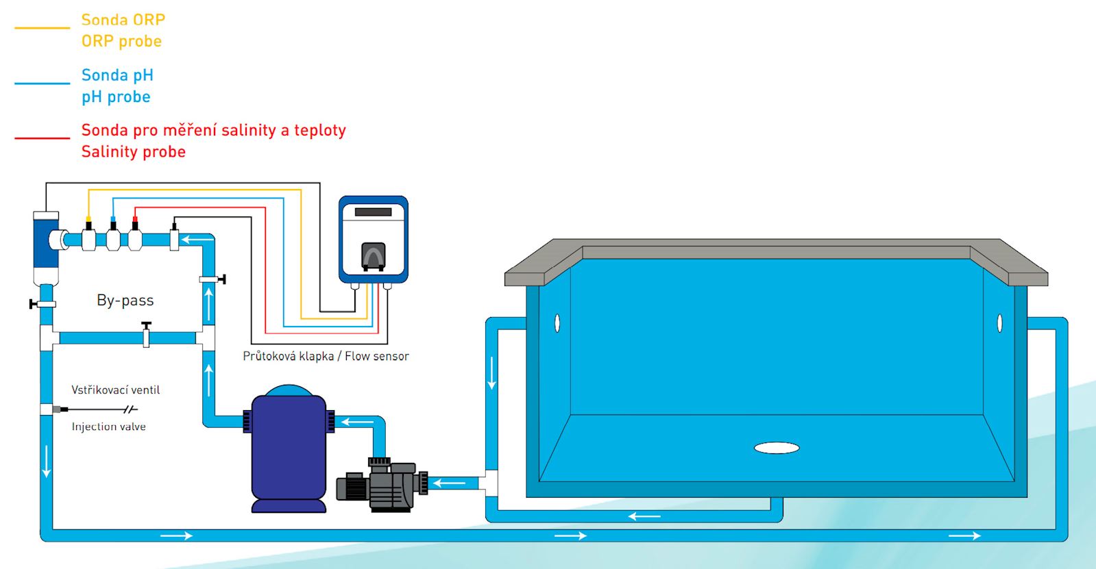 - Sonda ORP / sonda FCL není součástí balení - možnost rozšíření stanice o ORP KIT - automatická regulace výkonu dle hodnoty ORP měřené sondou (zlatá elektroda)