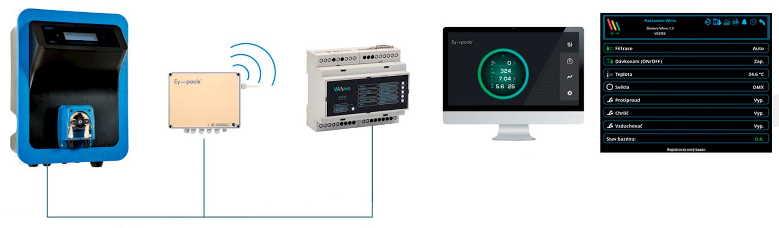 - Vlastní měření pH, s přídavným kitem také ORP / FCL