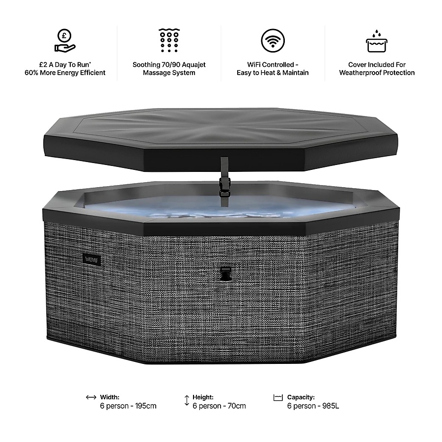 Vířivka je navržena až pro 6 osob, takže si ji užijete s rodinou i přáteli. O perfektní relaxaci se stará 90 vzduchových trysek, které vytváří intenzivní bublinkovou masáž po celém těle.