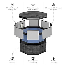 Integrovaný ohřev umožňuje nastavení teploty až na 40 °C, přičemž systém automaticky udržuje nastavenou teplotu. Díky chytré funkci Freeze Protect se vířivka sama zapne při poklesu teploty a zabrání zamrznutí vody.