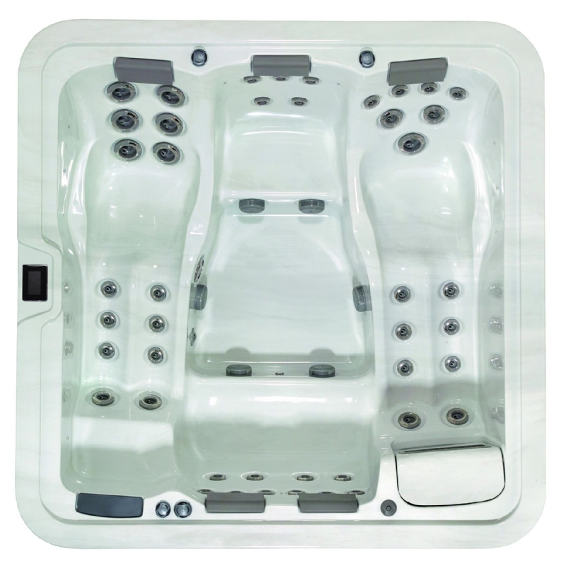 Se svým rozměrem řadí mezi největší vířivky Viskan Spa (230 cm x 230 cm), je štědře vybavená a nápaditě designovaná (dvě paralelní lehátka). Pozice lehátek Vás vyzývá ulehnout jeden vedle druhého a užívat si pokojnou a zároveň osvěžující masáž.