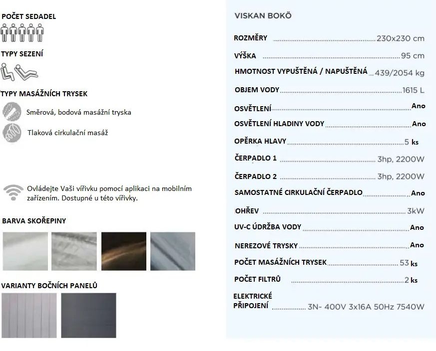 Poslední přírůstek do "rodiny" Viskan Spa. Její rozměry jsou 230 x 230 cm a její pozice disponují rozšířenou hloubkou a obrovským komfortem.