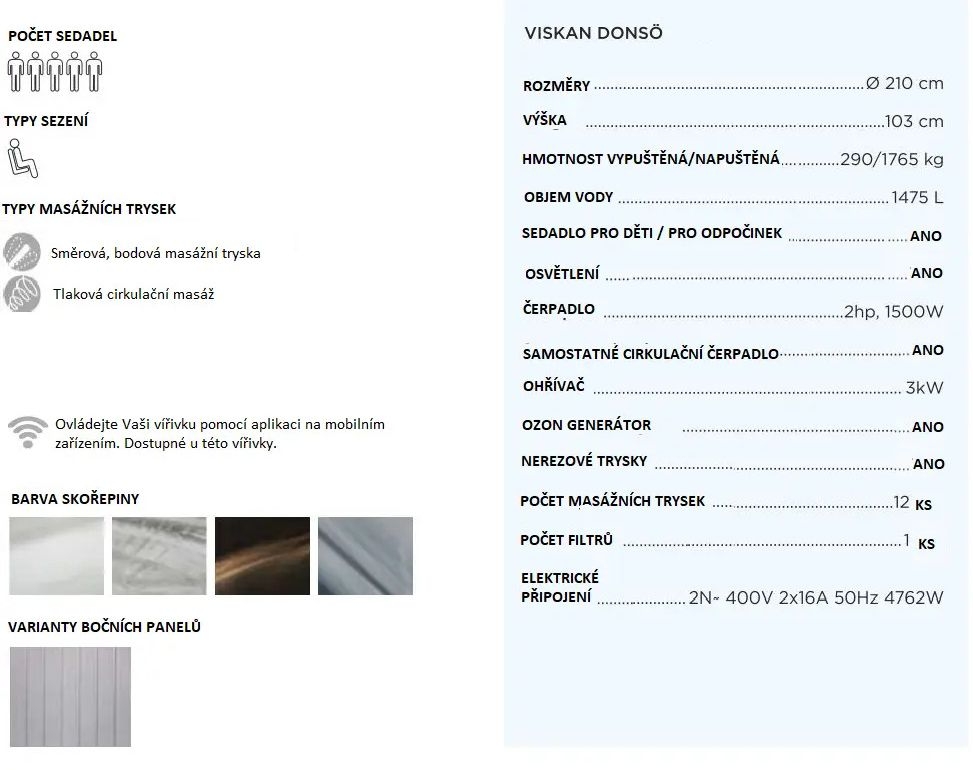 Donsö je kruhová vířivka pro 4-5 osob. Je vybavena dětským / odpočinkovým sedátkem, směrovými tryskami, podvodní lampou a LED diodami těsně pod vodní hladinou.