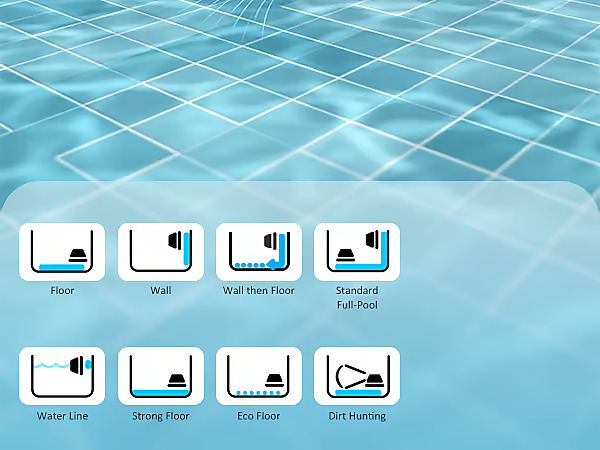 V aplikaci lze aktivovat také Expert Mode, kde si můžeš zvolit konkrétní navigační vzory pro dno i stěny (např. S-tvar, křížová nebo hvězdicová trasa). Robot tak dokáže přizpůsobit pohyb i atypickým bazénům.
