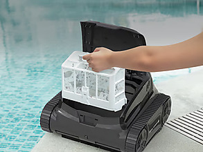 Výkonná baterie 7800 mAh umožňuje provoz až 210 minut v Eco režimu, takže zvládne i větší bazény do cca 300 m2. K dispozici je 8 režimů čištění, včetně samostatného čištění dna, stěn, vodní linky nebo inteligentního režimu „Dirt Hunting“, který využívá AI kameru k cílenému úklidu.