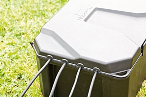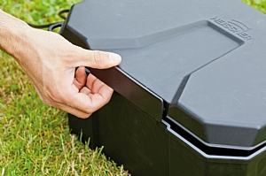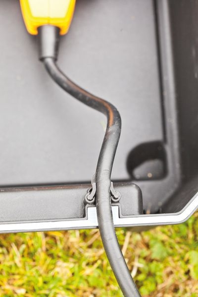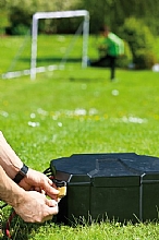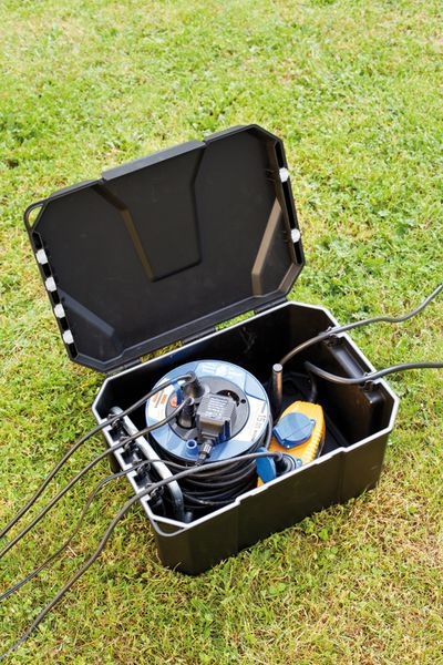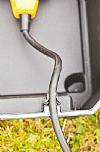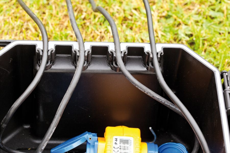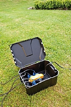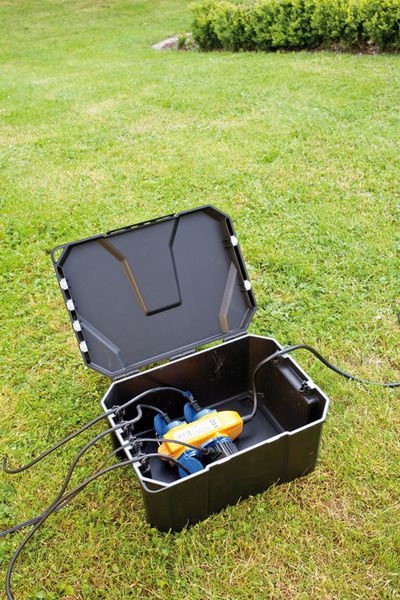 Bezpečnostní úložiště, umožňuje centrální, bezpečné a čisté uložení rozvodů elektrických kabelů. Rozměry boxu jsou 40 x 30 x 21 cm a nabízí dostatečné místo pro prodlužovací lišty, prodlužovák bubnový, časovače, atd. Box se dá zatížit do 80 kg a uzamknout visacím zámkem, aby byl zabezpečen před dětmi. Díky ochraně IP64 je prachu vzdorný a chráněn proti stříkající vodě. Otevřít se dá pohodlně jednou rukou. Může se zakopat do 2/3 a zakrýt.