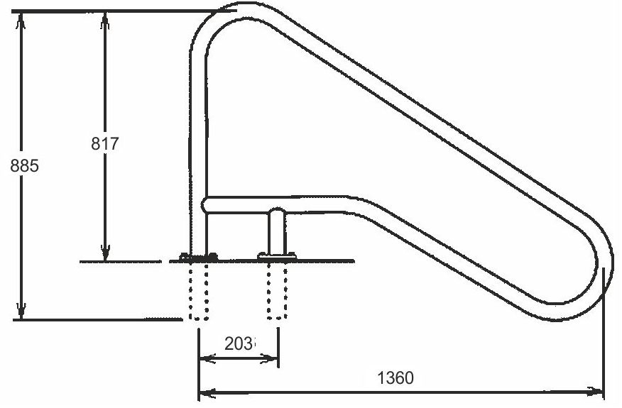 Žebříkové madlo 1360 mm s pouzdrem a rozetou