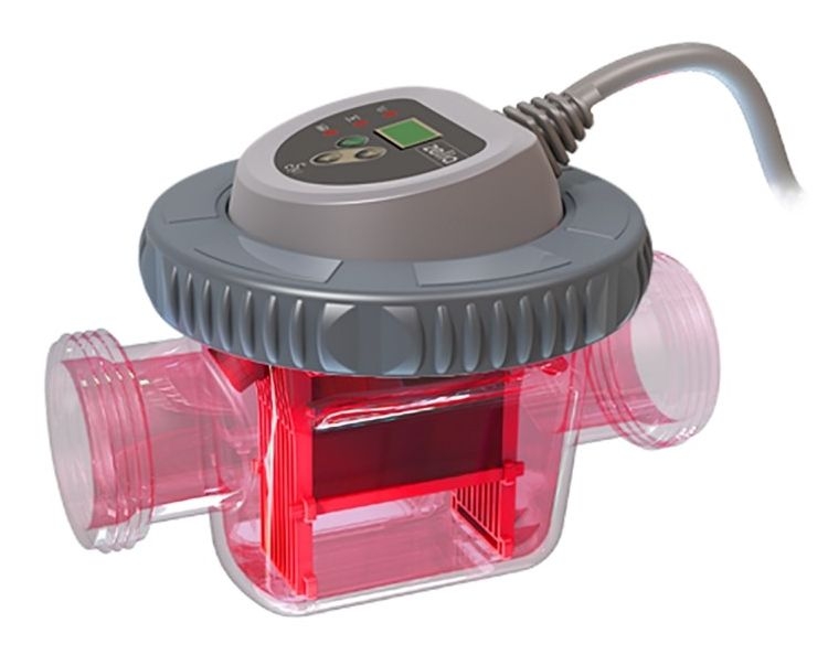 Kompaktní solinátor vhodný pro bazény do objemu 20m3. Zařízení hlídá průtok vody a množství soli ve vodě. Průhledná cela solinátoru je vybavena LED diodami, které svou barvou indikují stav zařízení. V případě, že je vše v pořádku, cela svítí zeleně, pokud nastal nějaký problém, cela svítí červeně.