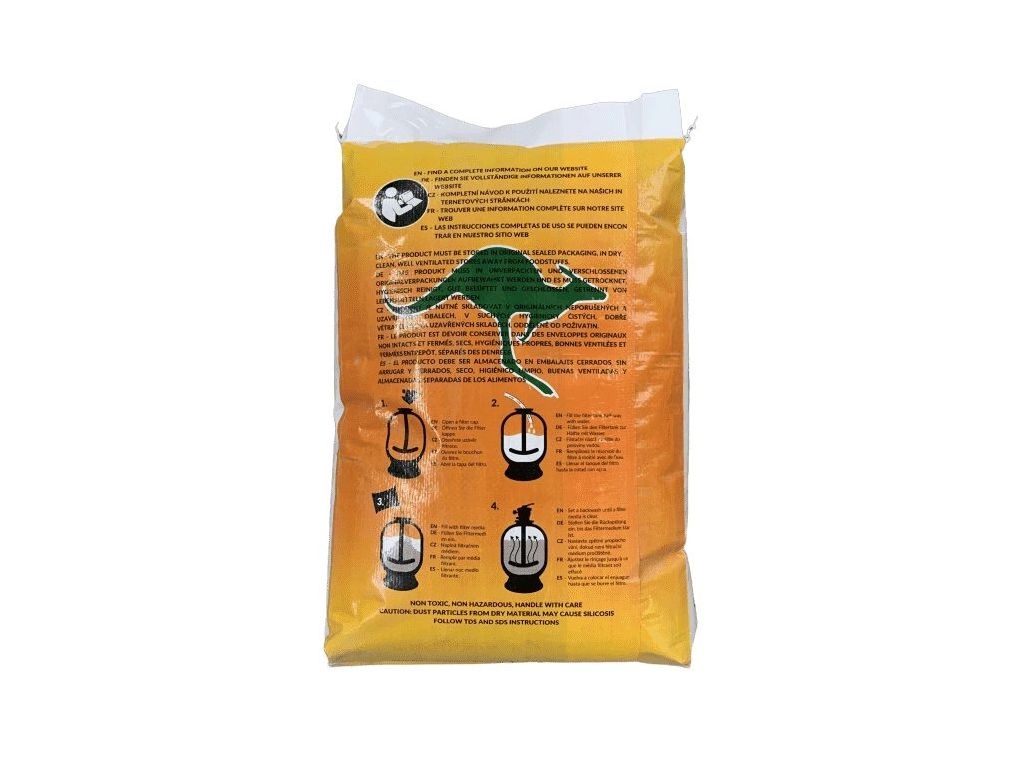 - Balení 15 kg odpovídá 20 kg filtračního písku.