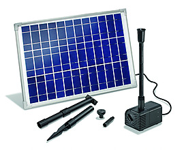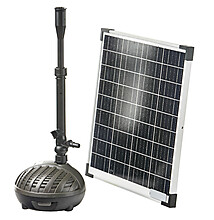 Jezírkové solární efektové čerpadlo s velice nízkou spotřebou elektrické energie a vysokým stupněm účinnosti. 2 nástavce pro vodní efekty, regulovatelná teleskopická stoupačka, solární panel 20 W, výkon 1300 l/h, dopravní výška cca 1,90 m.