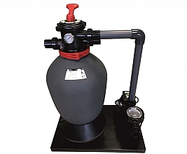 Filtrační stanice vhodná pro bazény do 45 m3. Nádoba je vyrobena z odolného polypropylenu. Před čerpadlem je zařazen předfiltr na hrubé nečistoty. Horní šesticestný ventil.