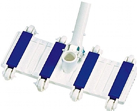 Připojení na hadici 38 mm a bazénovou tyč. Spodní kartáče pro čištění dna bazénu. Kolečka pro lepší pojezd v bazénu. Rozměry 34,5 x 13 cm.